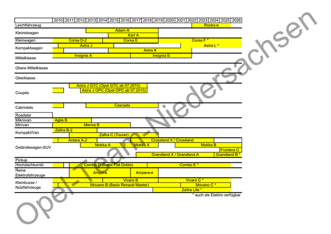 Opel Modellübersicht bis 2020