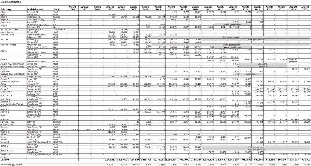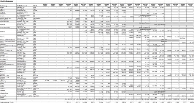 Hier eine unverbindliche Auflistung der Produktionszahlen der letzten Jahre.